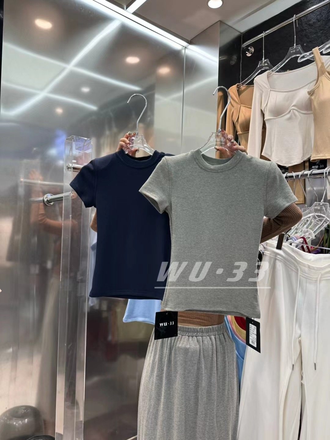 修身 wu33打底衫 圆领短袖 百搭基础款 T恤垫肩女上衣潮 2024春夏新款