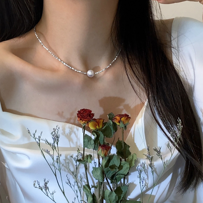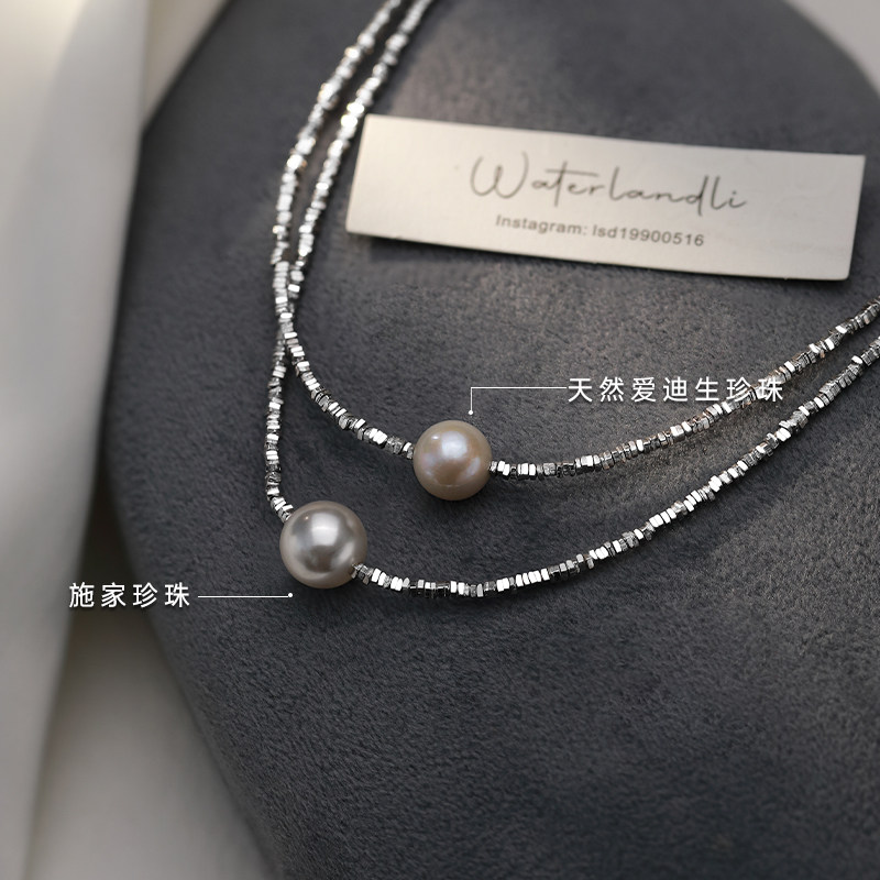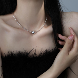 S999纯银碎银子项链女施家珍珠天然轻奢小众锁骨链2026新款 爆款
