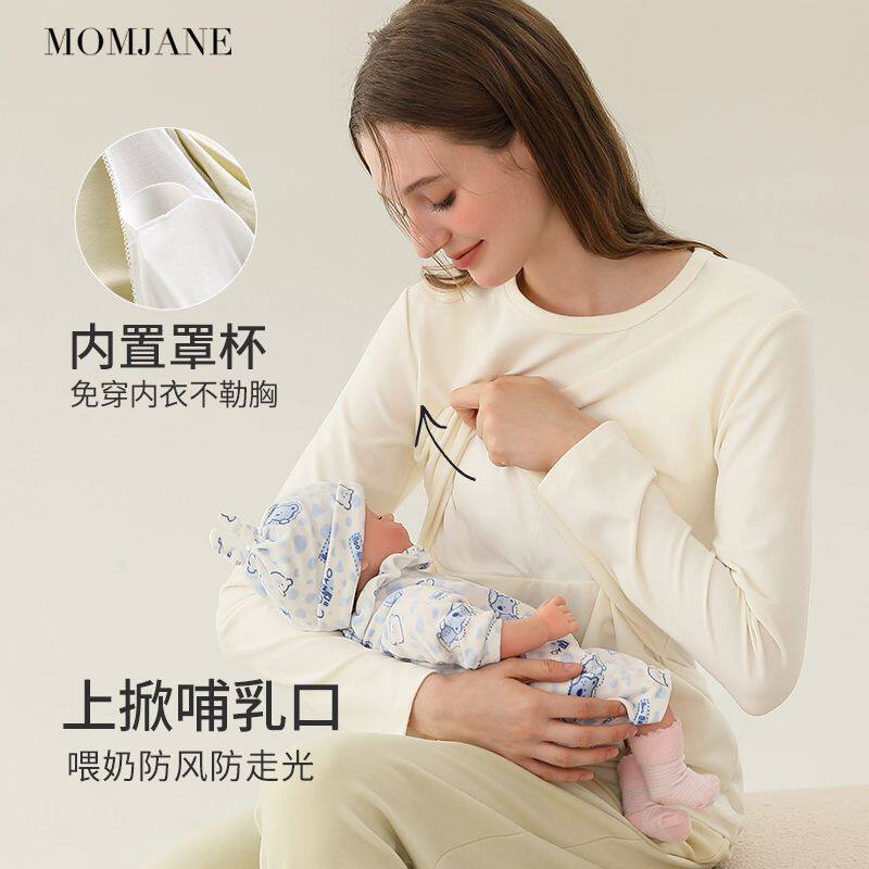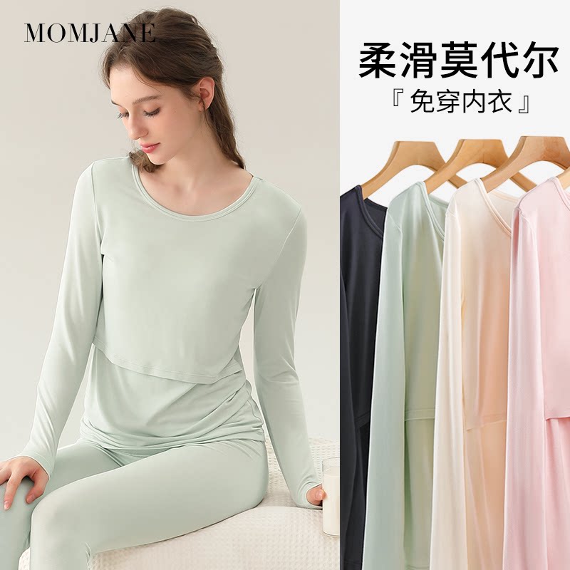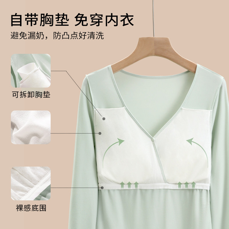 哺乳上衣t恤秋衣孕妇莫代尔春夏薄款 喂奶带胸垫 打底孕妇秋衣秋裤