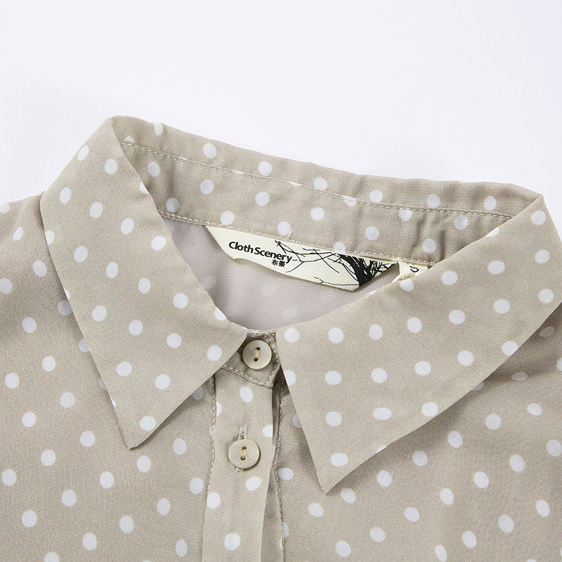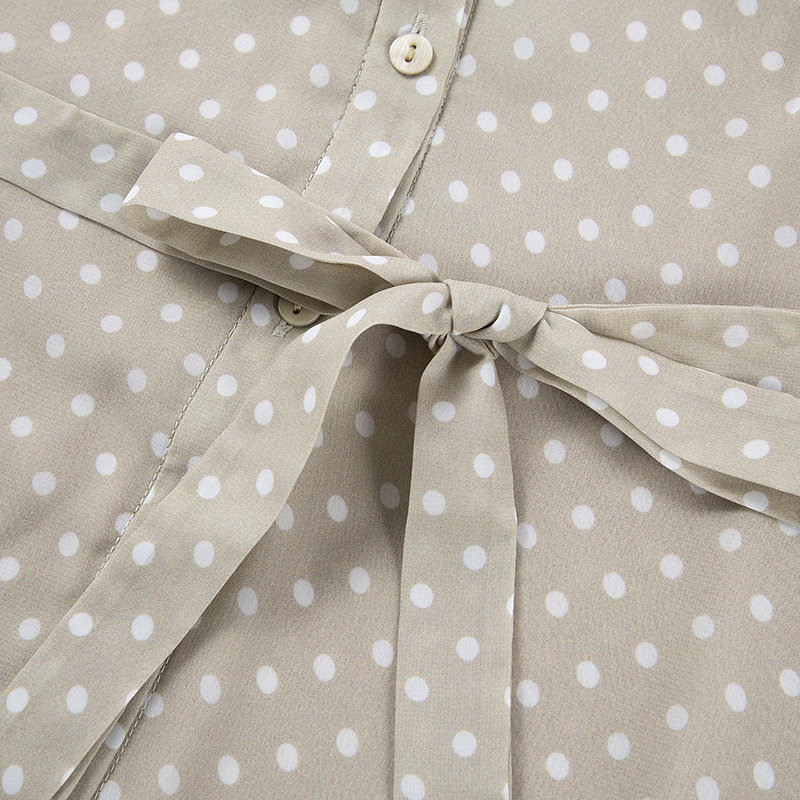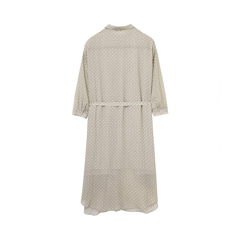 裙2027 不对称门襟可收腰中长雪纺波点衬衫 布景连衣裙女春季 新品