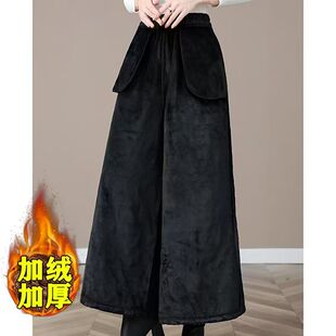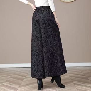 宽松显瘦松紧休闲裤 秋冬国风中式 直筒裤 2025新款 女 气质提花阔脚裤