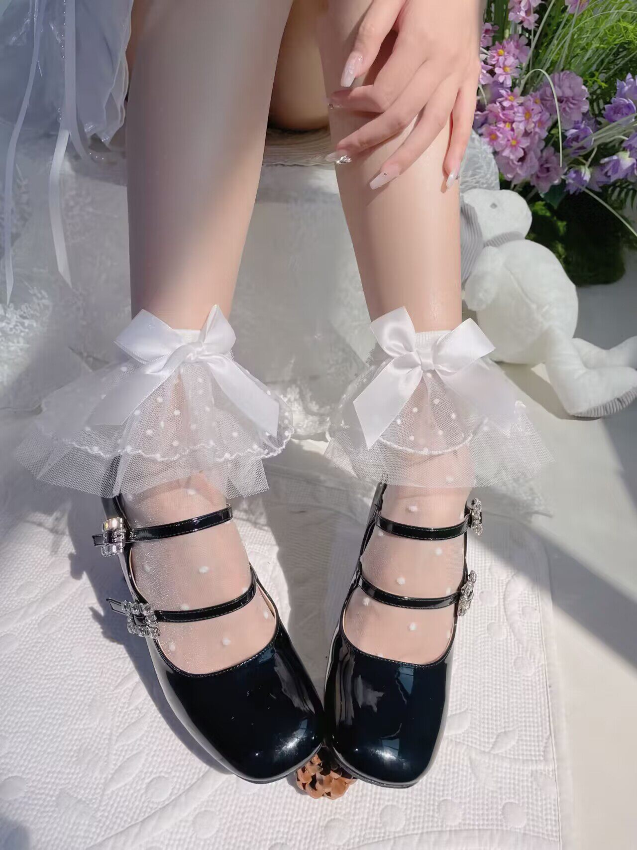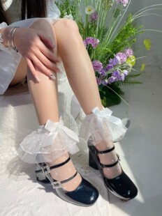 梦幻人偶原创蝴蝶结Lolita袜子甜美波点蕾丝花边中筒袜白色短袜