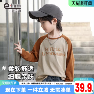 男童长袖 洋气拼接款 t恤2026春装 纯棉T恤打底衫 潮 新款 小象汉姆童装