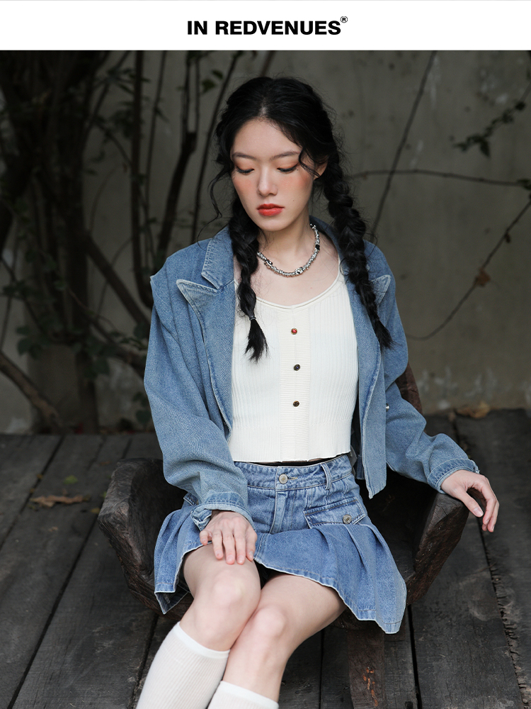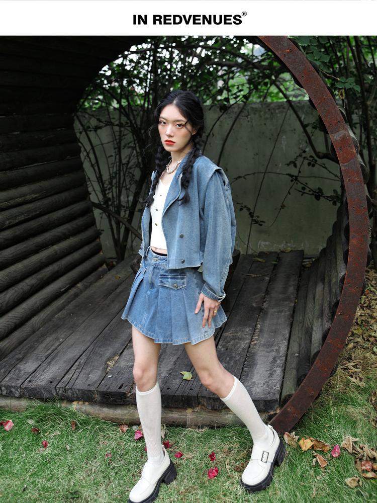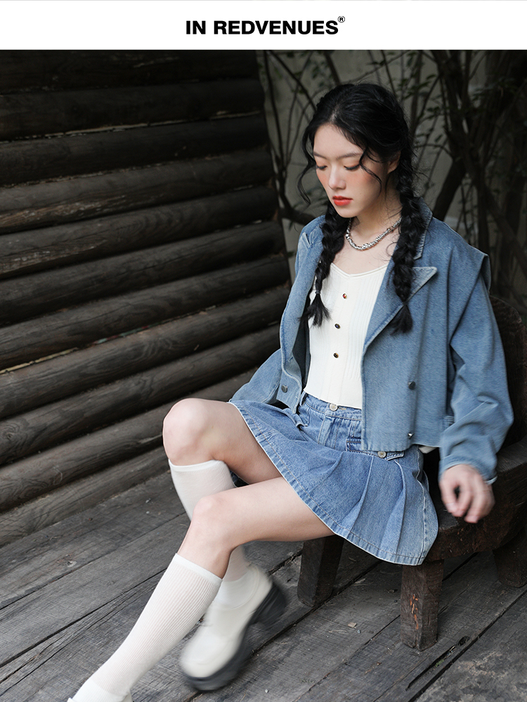 红馆Redvenues牛仔外套女宽松bf慵懒风小个子秋季 短外套复古港风