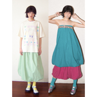 化学少女「色彩派对」夏季 裙子 松紧腰花苞裙半身裙女高腰显瘦长款