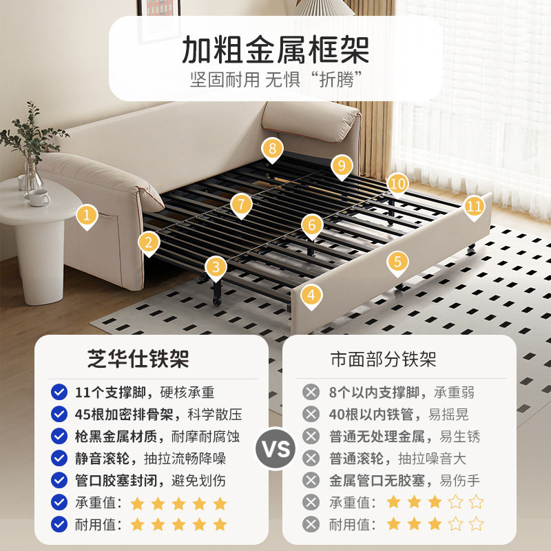 芝华仕现代简约折叠沙发床一体两用客厅科技布多功能沙发6305