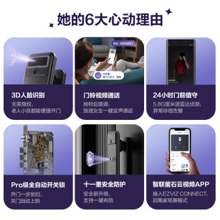 萤石AI3D人脸识别智能锁人脸锁无需指纹家用防盗门电子门锁y3000
