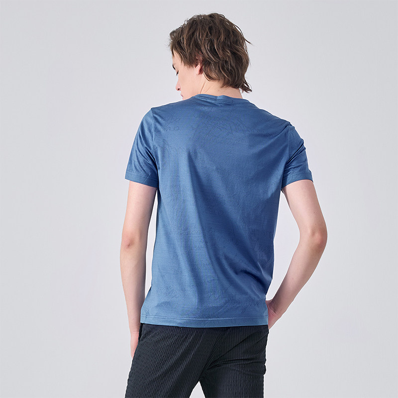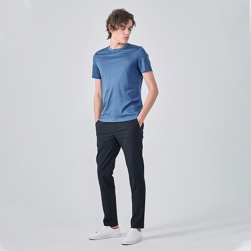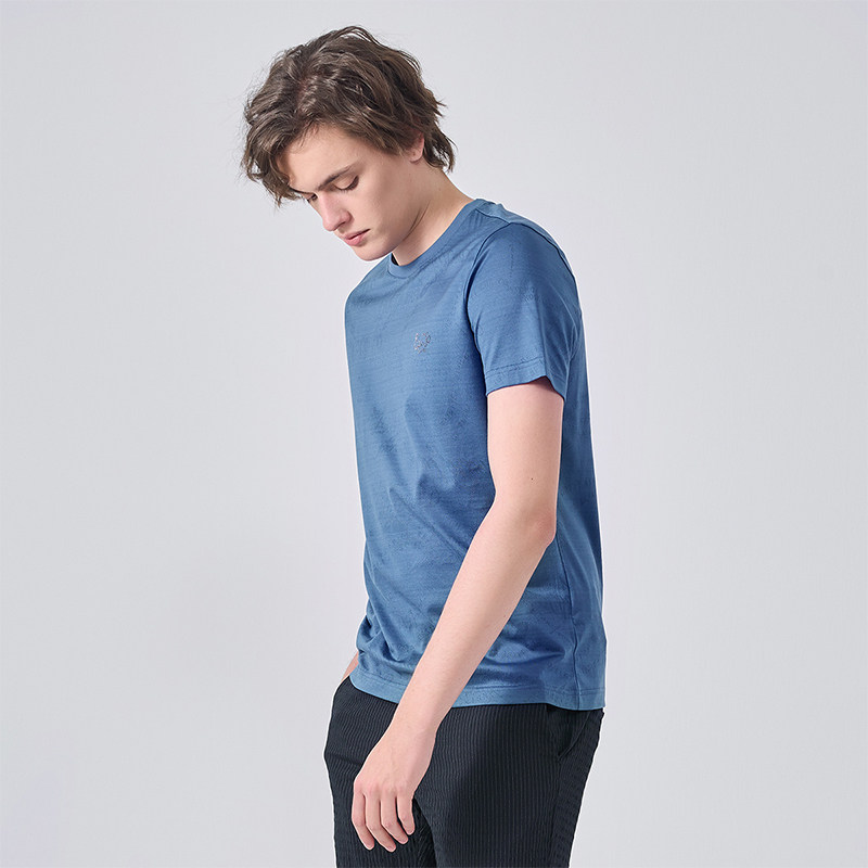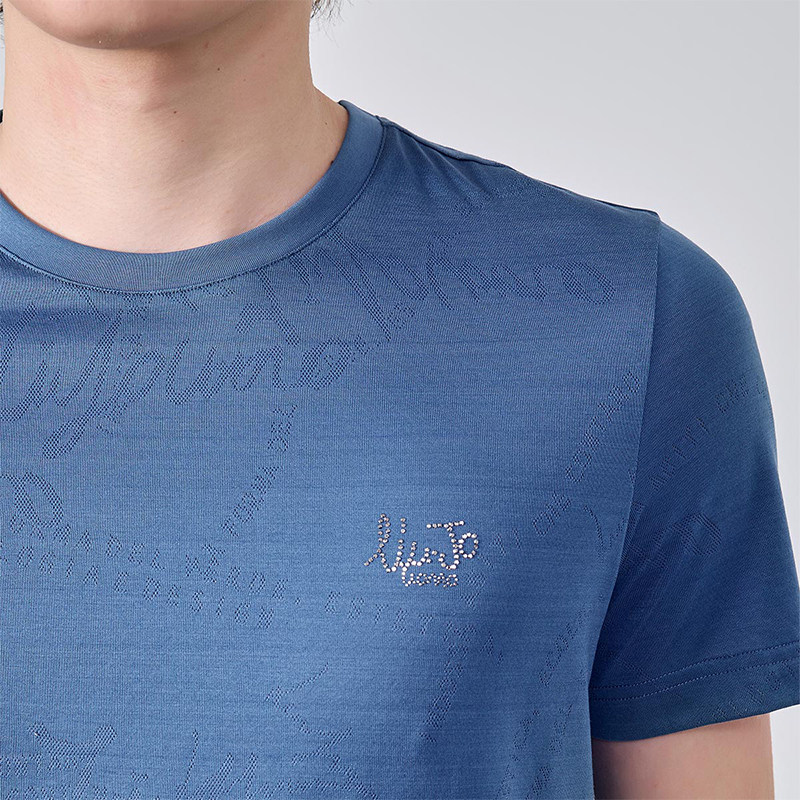 圆领镂空提花烫钻logo短袖 夏季 T恤男简约 UOMO男装 LIUJO