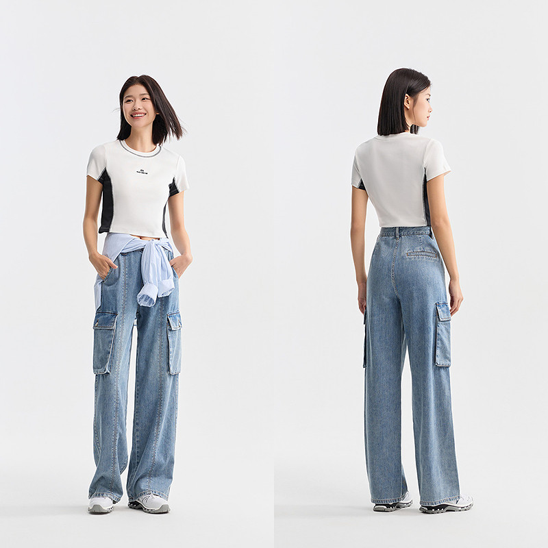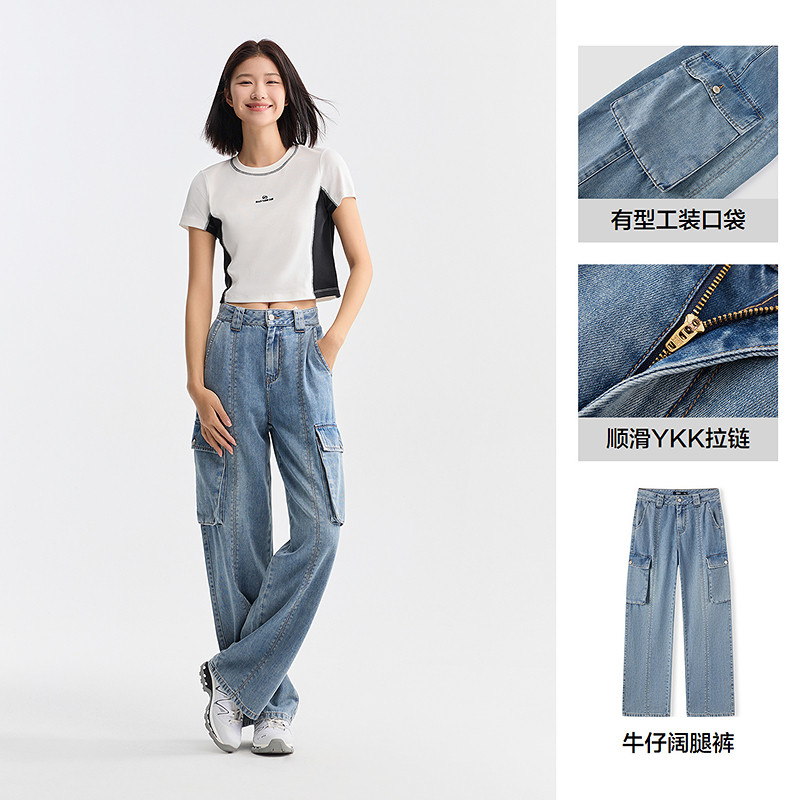 个性 女高街阔腿裤 夏季 显腿长工装 潮酷炸街 森柔牛仔 裤 森马牛仔裤