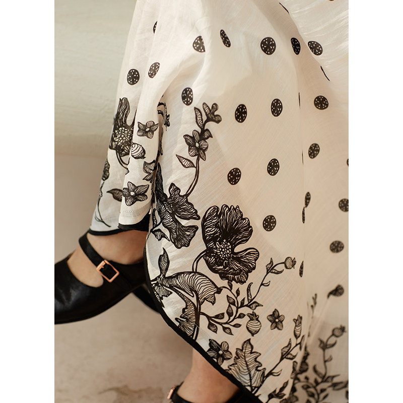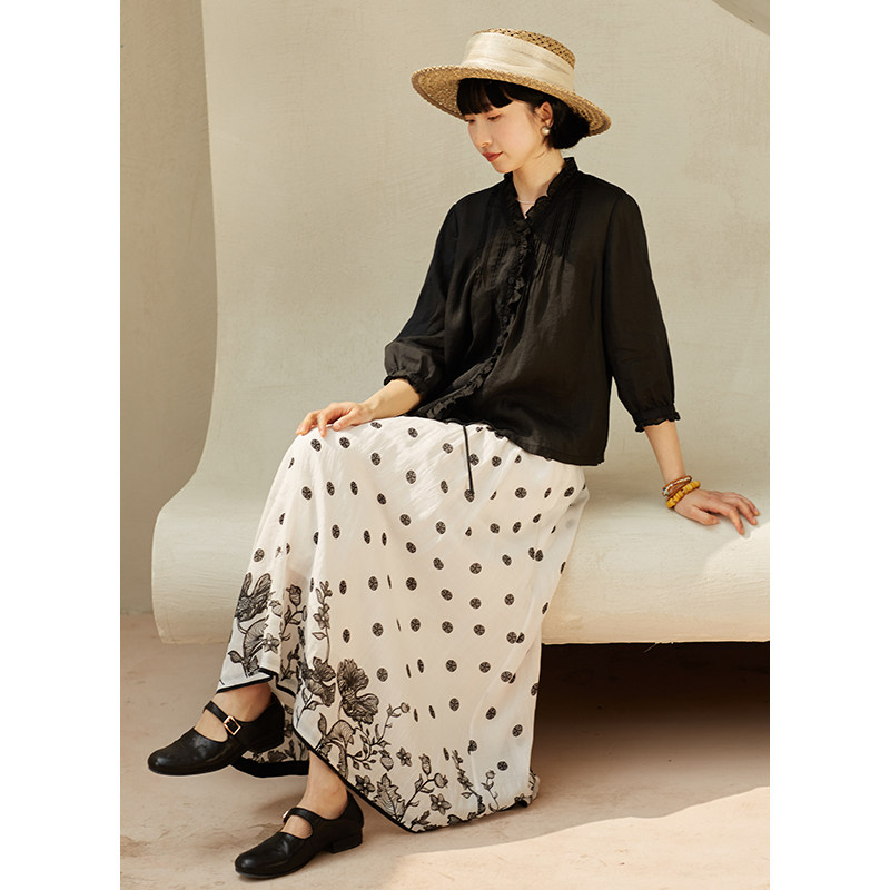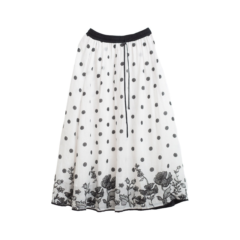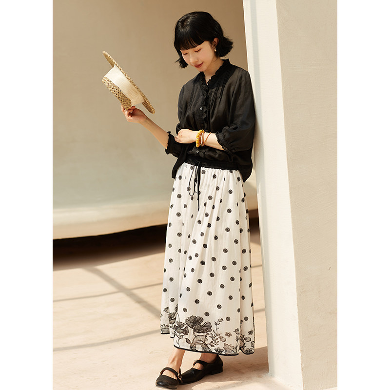 42支苎麻天丝波点印花文艺半身裙女 春夏新品 忘城H750座 繁花景长