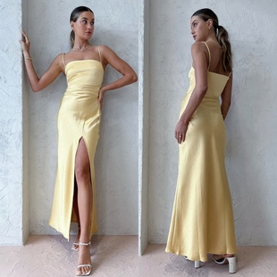 胖mm夏 婚礼姐妹团大码 西式 黄色伴娘服礼服缎面小众高级感2024新款