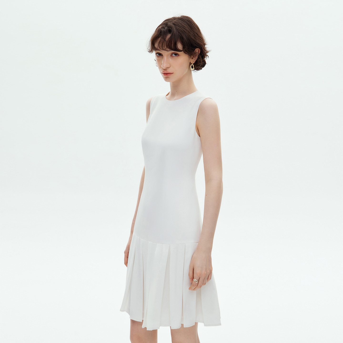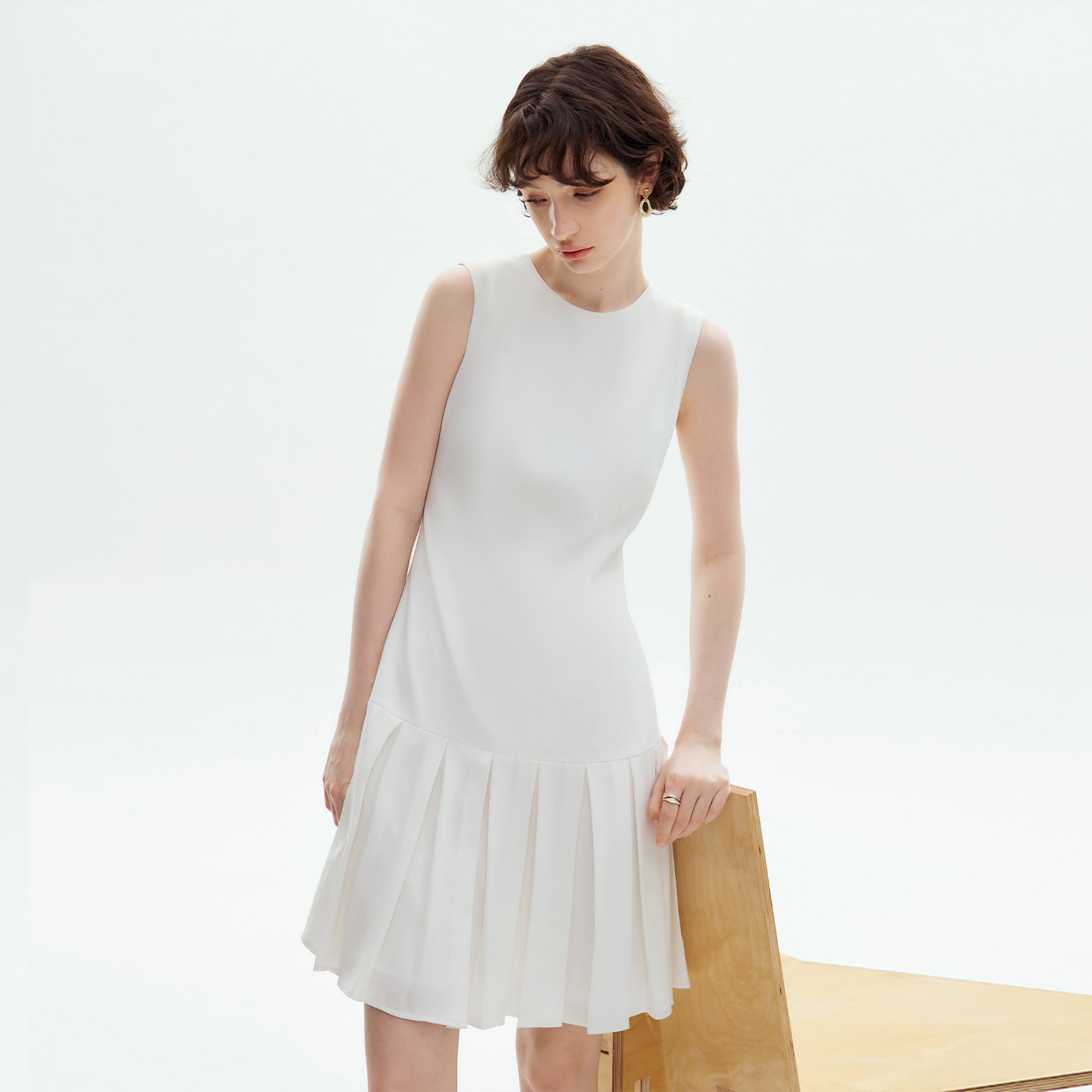 断码 藏青色醋酸无袖 清仓 TOW雅白色 百褶连衣裙女气质裙子 VER