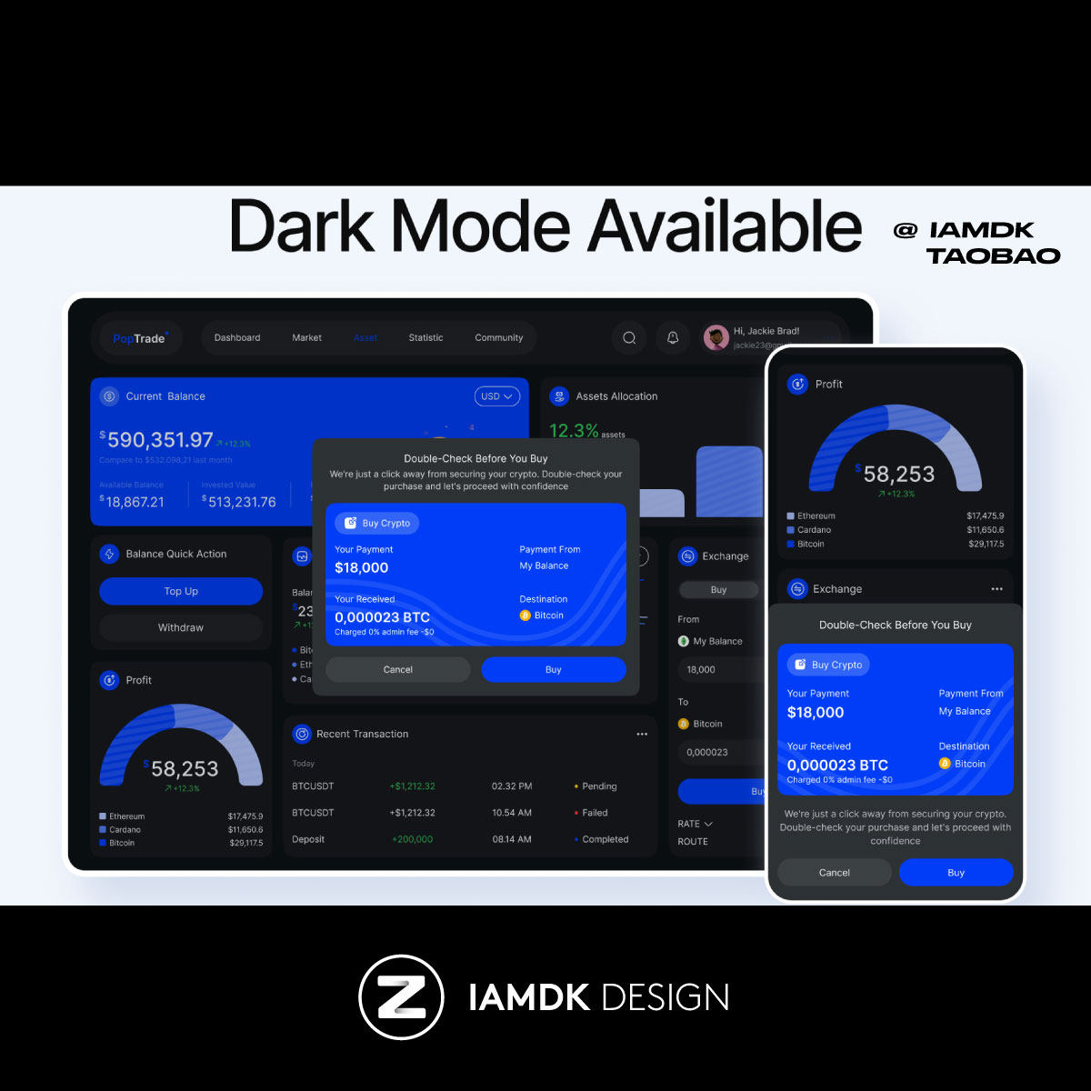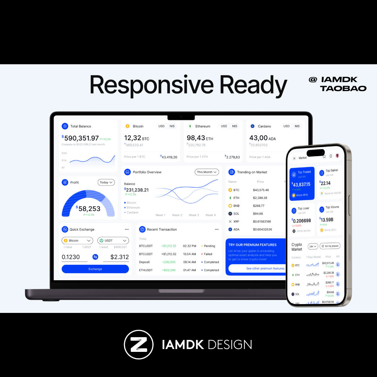 屏双配色电商销售交易管理后台仪表盘界面设计Figma模板套件