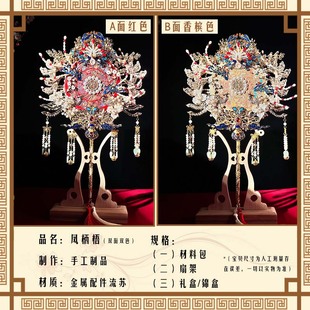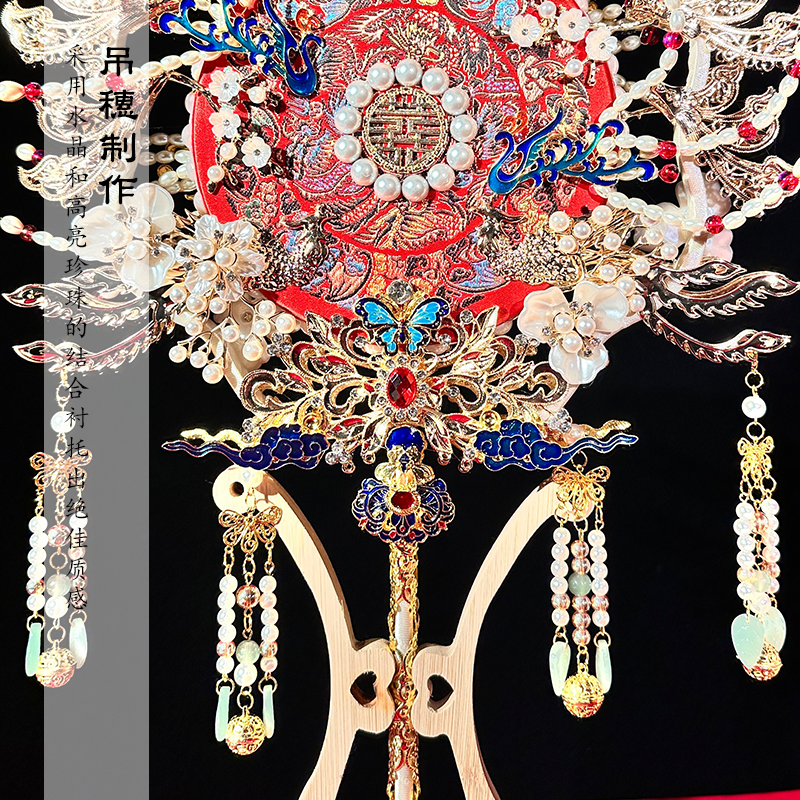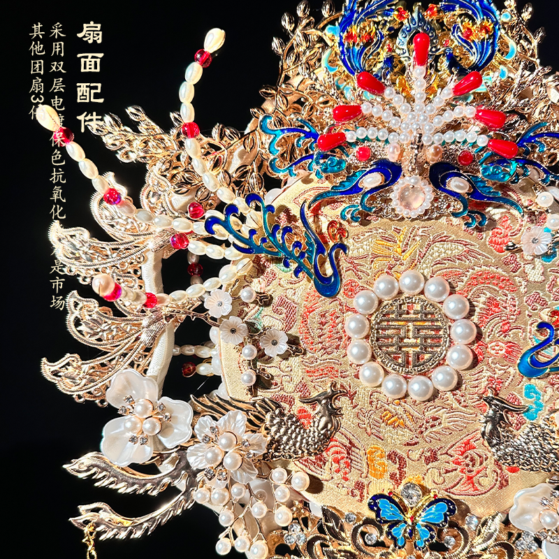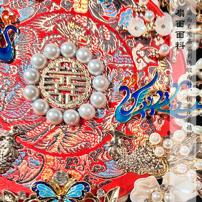 结婚扇成品重工喜扇diy材料包 双色双面团扇新娘 珍扇记 凤栖梧