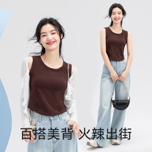 鱼骨上衣 美背百搭显瘦针织打底修身 带胸垫背心女吊带内搭无袖 夏季