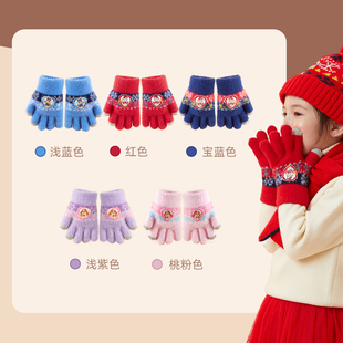 儿童手套3 保暖加绒五指套男童女童可爱卡通分指宝宝针织 6岁冬季