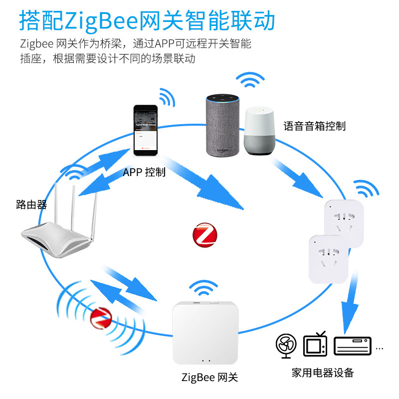 手机无线智能插座涂鸦 天猫Aleax语音控制电量计量统 Zigbee