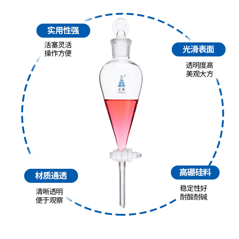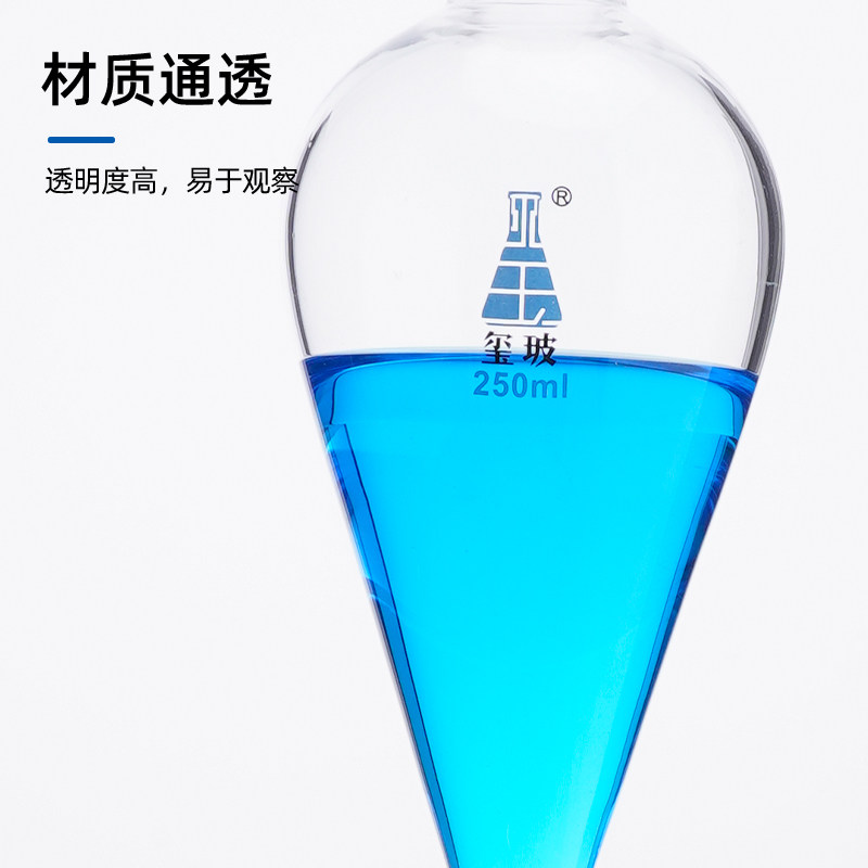125 250 5000ml 梨形分液漏斗加厚玻璃聚四氟活塞30 磨口油液分离滴液刻度漏斗实验室 2000 1000 玺玻 500