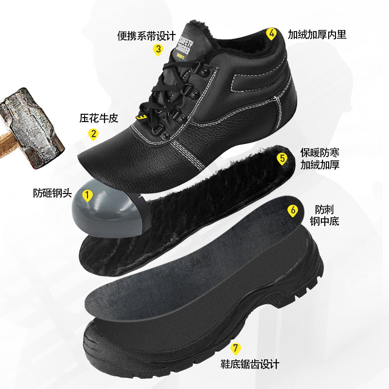 工作鞋 加绒防寒防砸防刺穿防滑安全高帮男冬季 舒适防冻棉鞋 劳保鞋