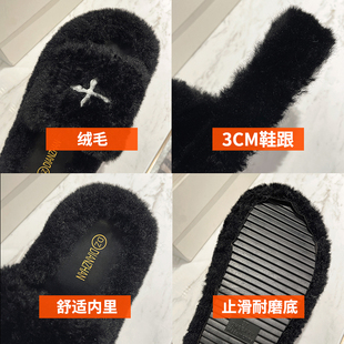 室内家居防滑保暖毛毛加绒棉鞋 包跟2025新款 外穿 女士秋冬季 棉拖鞋