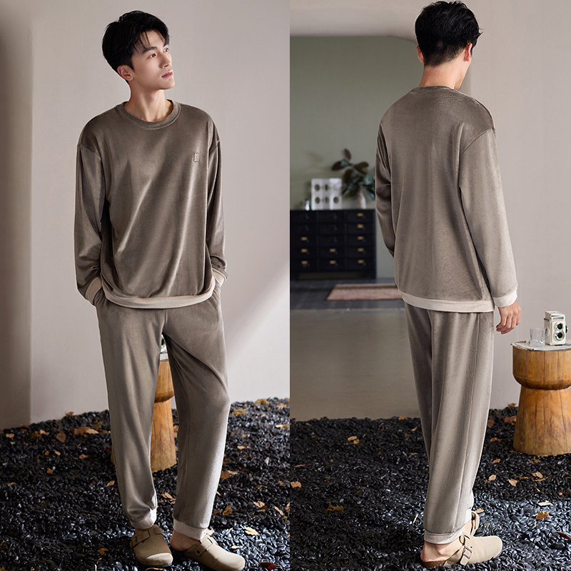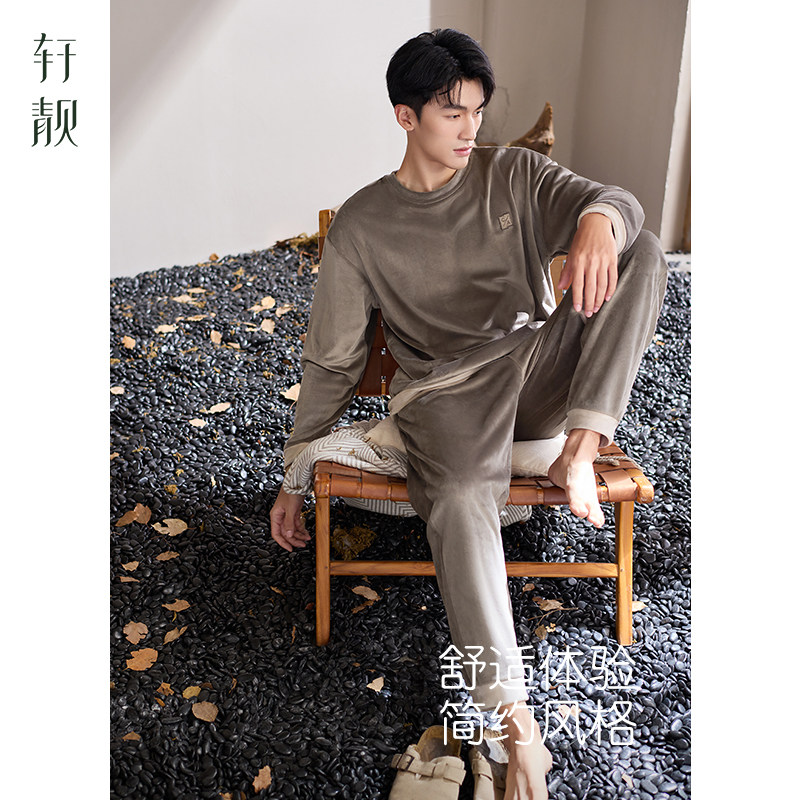 夹棉袄珊瑚绒家居服套装 加绒冬天保暖三层加厚款 冬季 轩靓睡衣男士