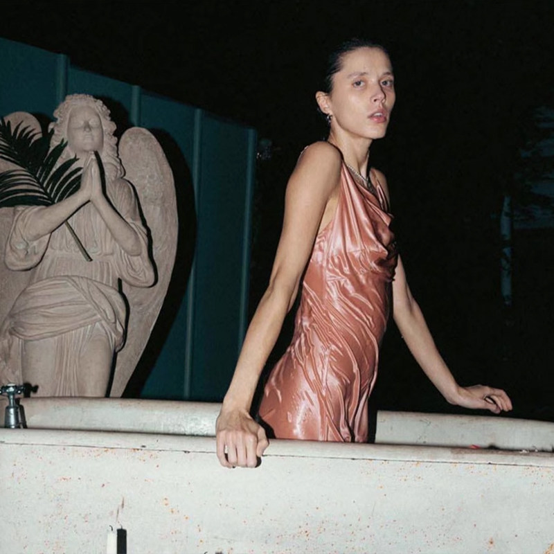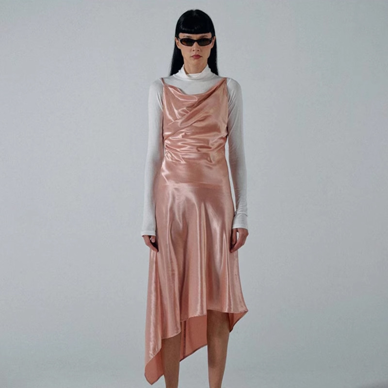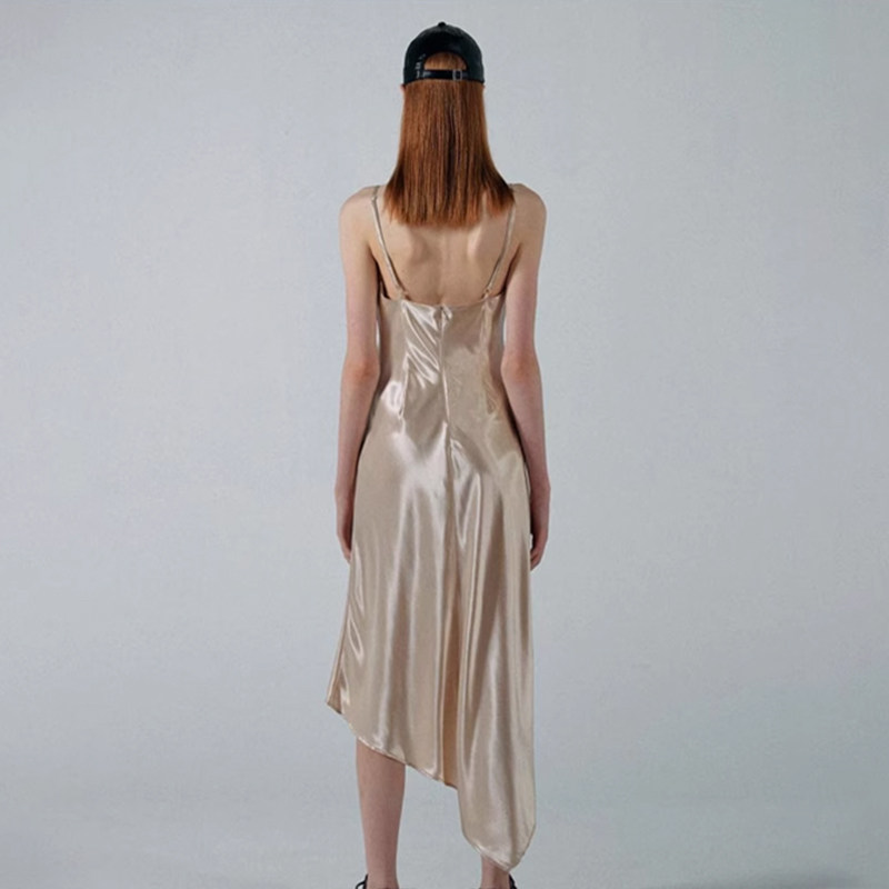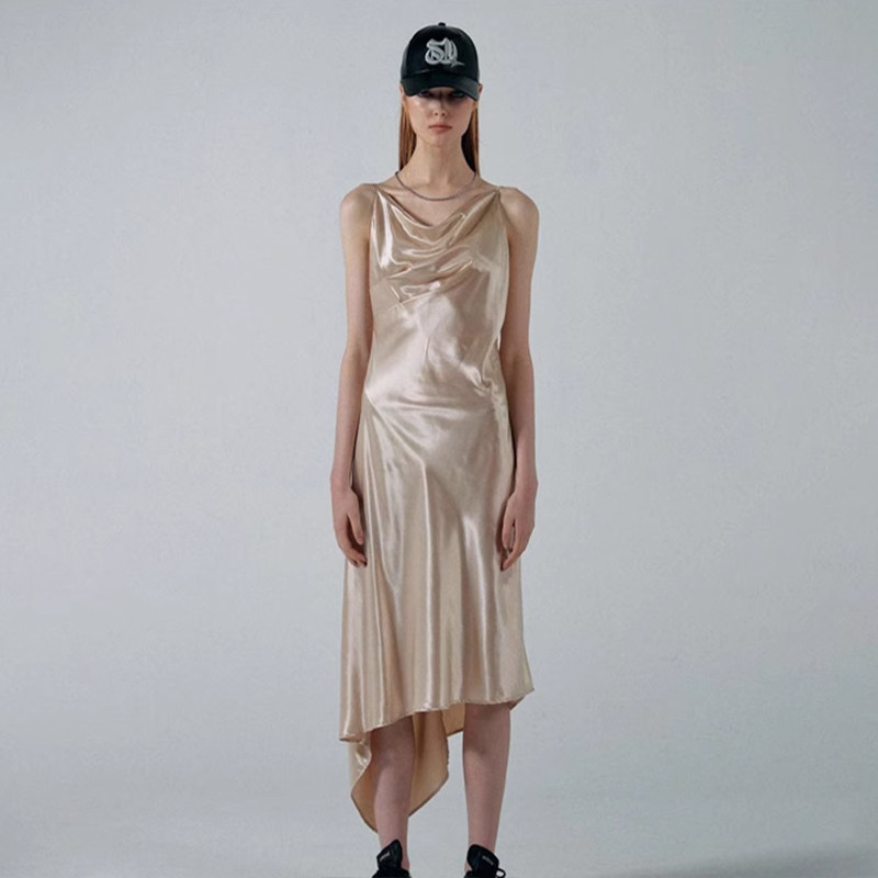 SCULPTOR亮面绸缎丝质慵懒性感修身 吊带连衣裙女