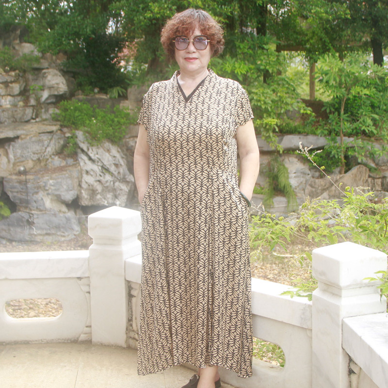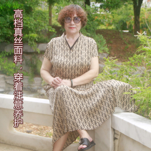 胖妈妈款 夏季 阔太太加肥大码 连衣裙中老年薄款 气质长裙 真丝中长款