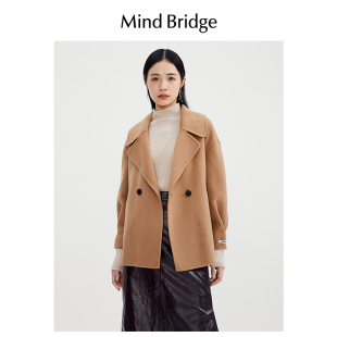 羊毛大衣女士韩系双面呢外套 大翻领中长款 Mind Bridge百家好冬季
