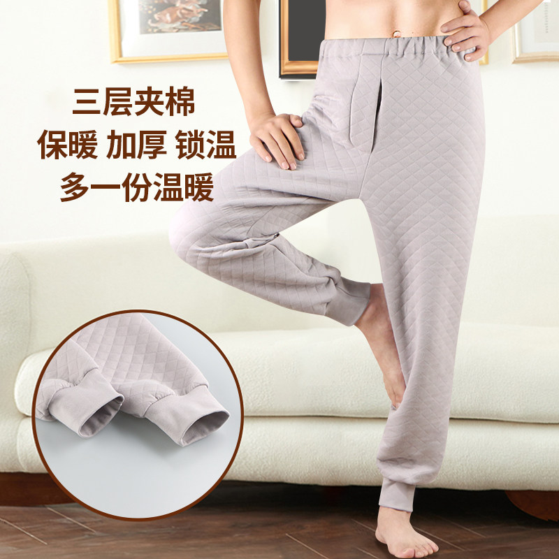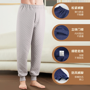 纯棉加厚三层夹棉保暖束脚口中腰纯色长睡裤 春秋男士 子 空气棉