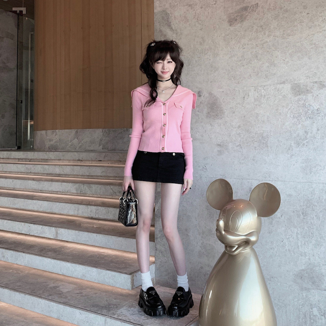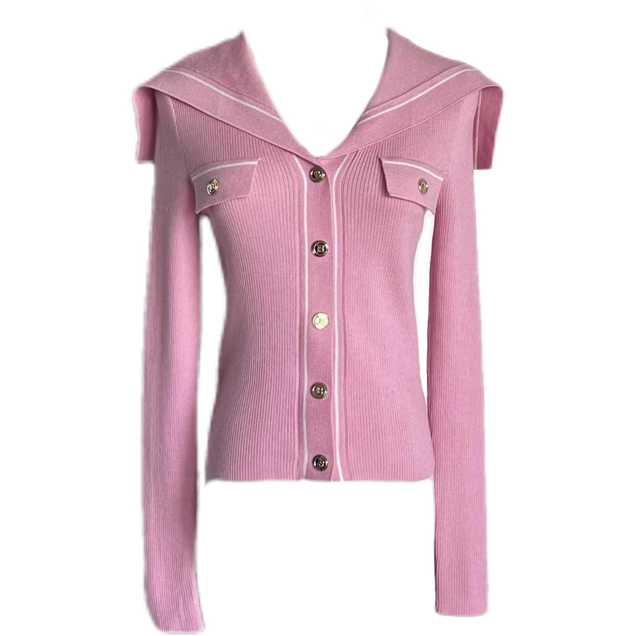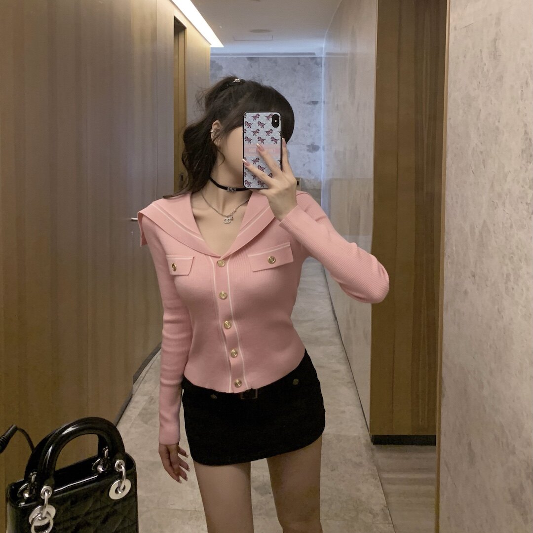 针织衫 ROUGE 长袖 海军领金属扣弹力羊毛修身 DIAMOND甜心水手