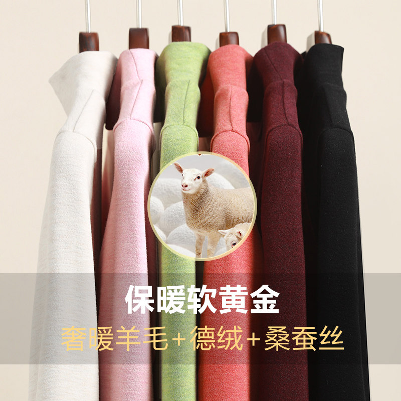 桑蚕丝羊毛德绒半高领打底衫 中领内搭加绒保暖内衣 女秋冬2025新款