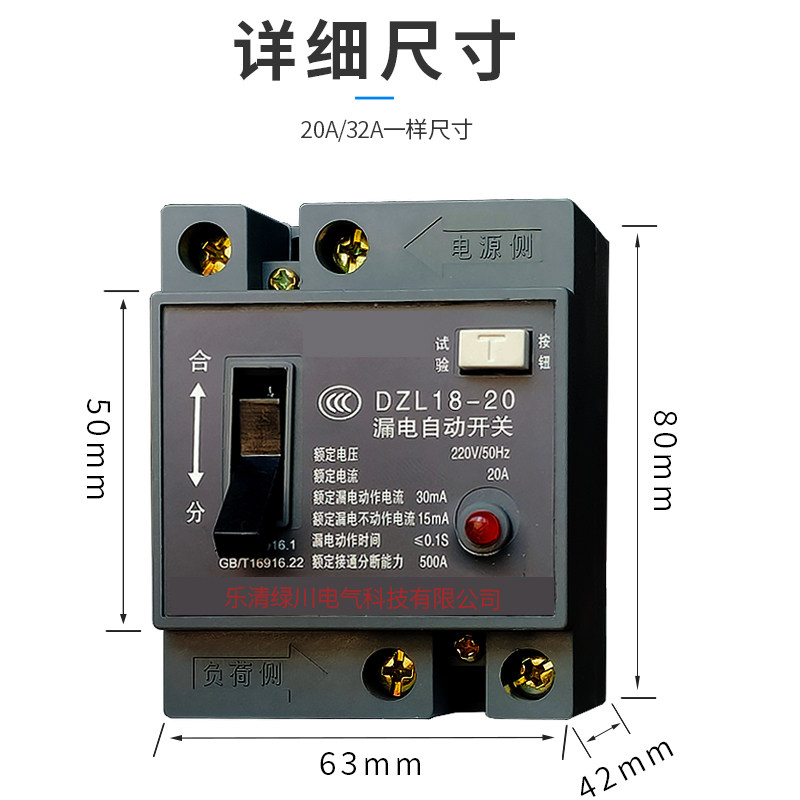 德力西空气开关带漏电保护器2P63A家用漏保32a断路器空调空开220V