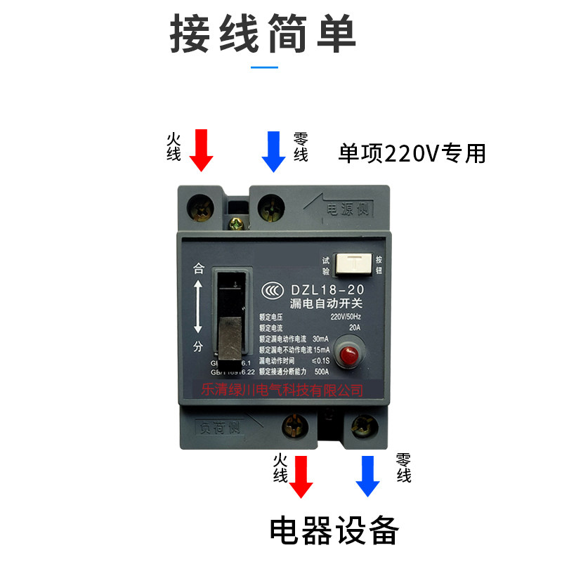德力西空气开关断路器家用漏电保护器2P63a电闸总空开带漏电保护