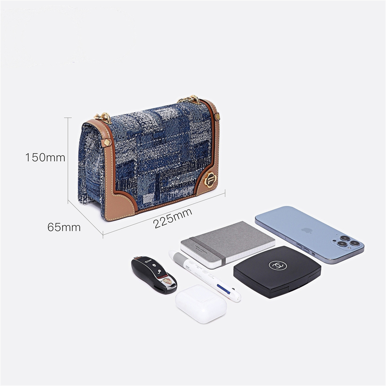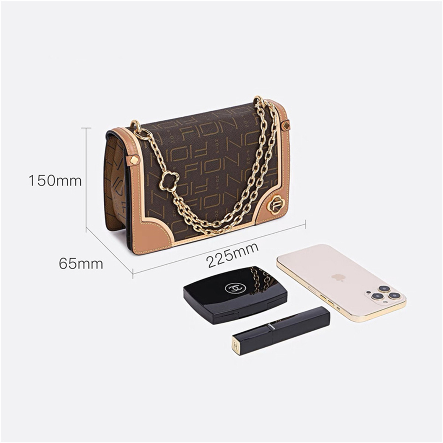 006 通勤百搭女链条单肩斜挎包FAAFJLE002 Fion 菲安妮老花小方包