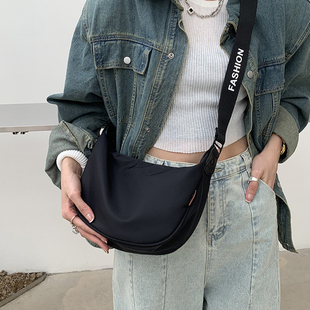 慵懒月牙饺子包2024新款 外出防水牛津布斜挎包休闲实用包女 秋冬季