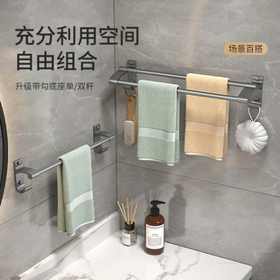 枪灰色毛巾架卫生间太空铝加长单杆双杆浴巾杆置物架加宽挂钩挂杆
