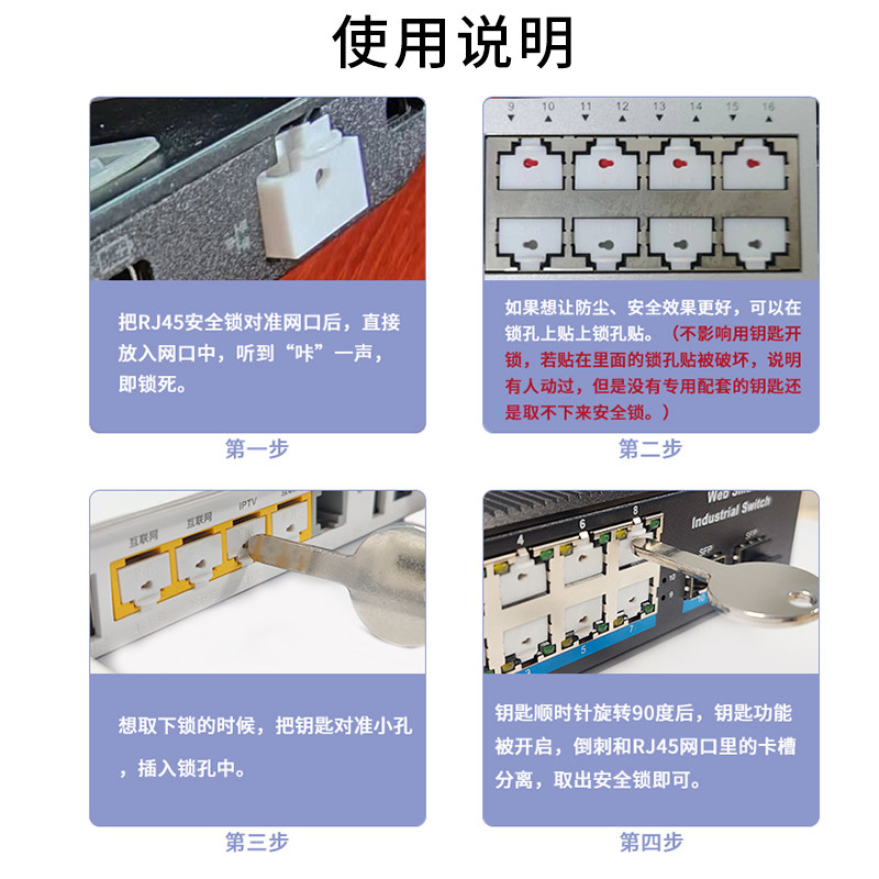 恒瑞斯通网口安全锁可拆卸rj45防尘塞封口锁网口封堵器网线接口锁
