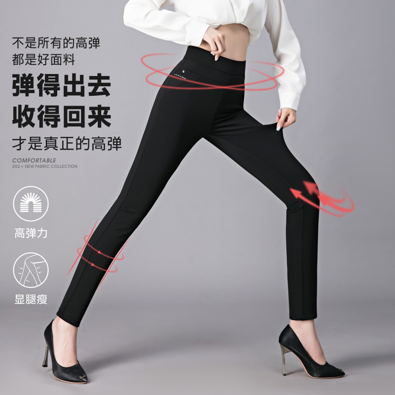 浅色糯米休闲裤 子 女秋冬加绒胖妹妹mm高腰宽松显瘦梨型身材阔腿裤