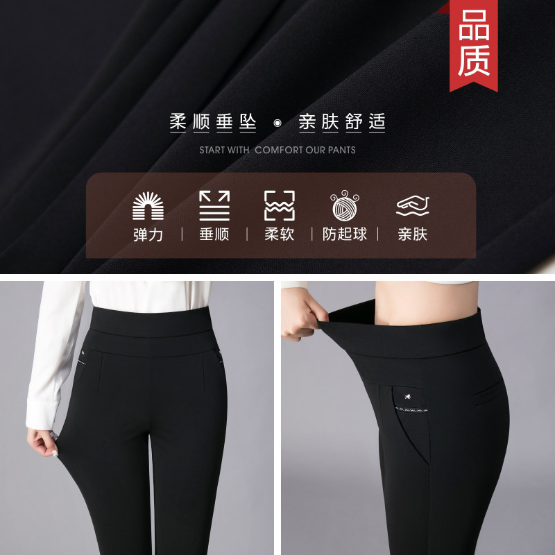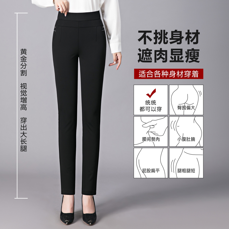 子潮 女秋冬加绒胖妹妹mm设计感高腰宽松显瘦休闲阔腿裤 黑色西装 裤