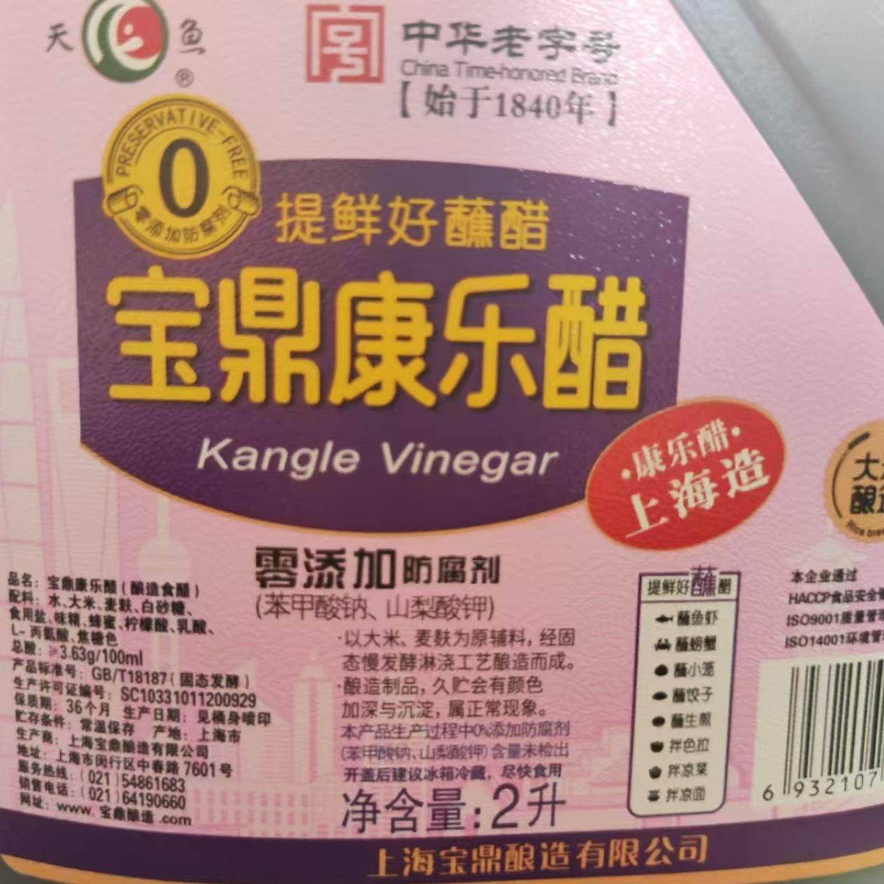 宝鼎天鱼康乐醋2L桶装 龙虾螃蟹蒸饺煎包炖猪蹄五花肉厨房开胃凉拌