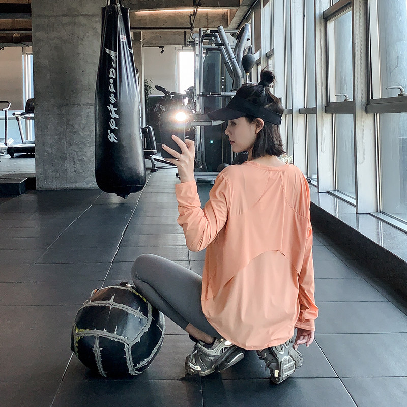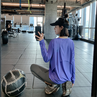 宽松速干衣跑步外罩衫 T恤运动上衣长袖 户外大码 健身服女春夏薄款