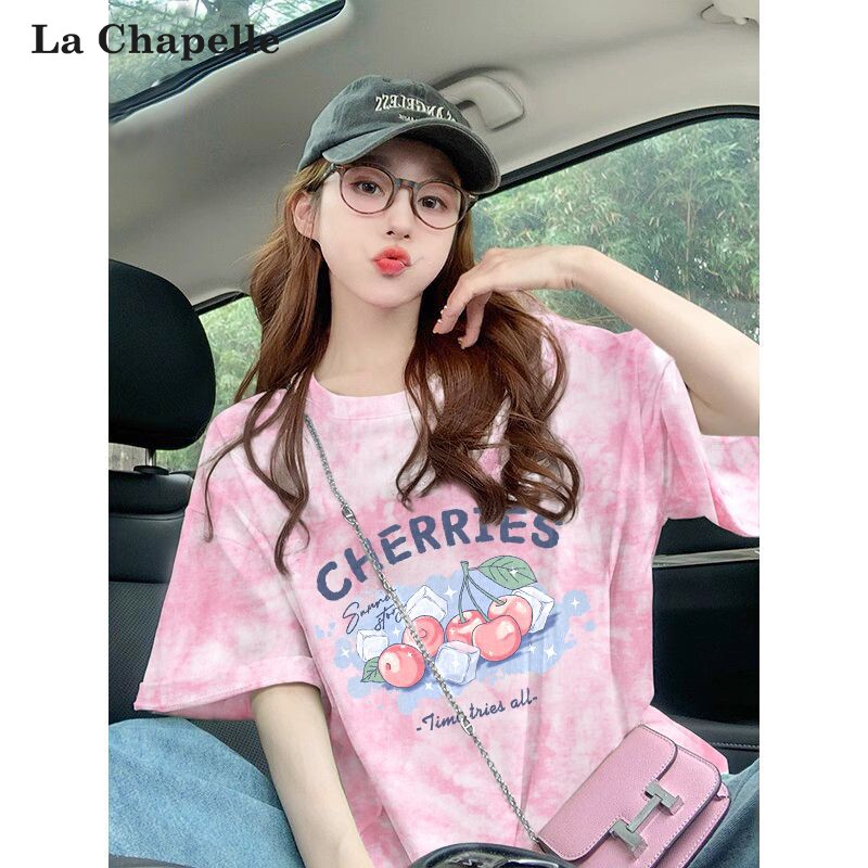 上衣小个子纯棉百搭半袖 拉夏贝尔扎染短袖 夏季 爆款 t恤女2026新款
