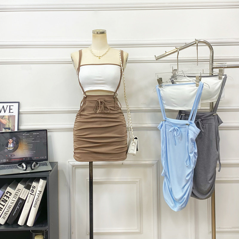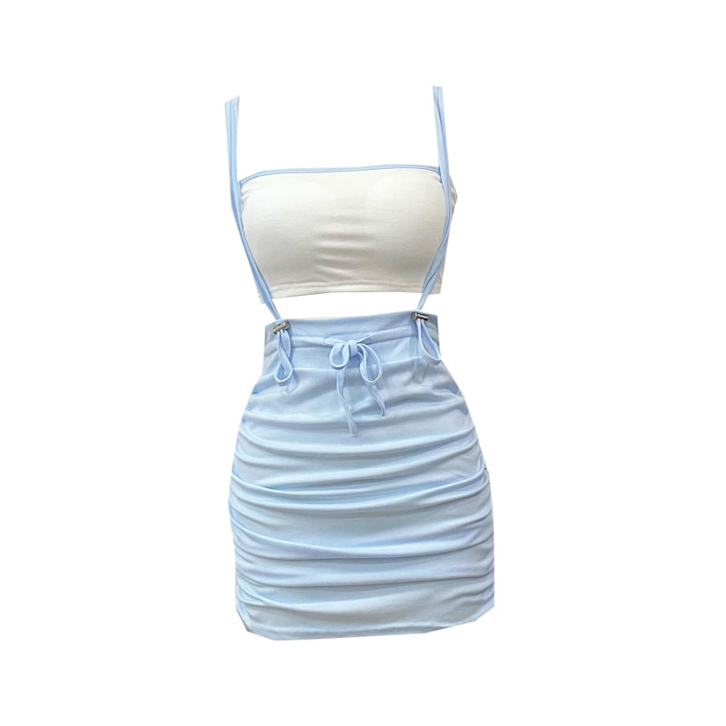 女 吊带连衣裙包臀裙短裙两件套装 设计感抹胸短款 裹胸背心上衣