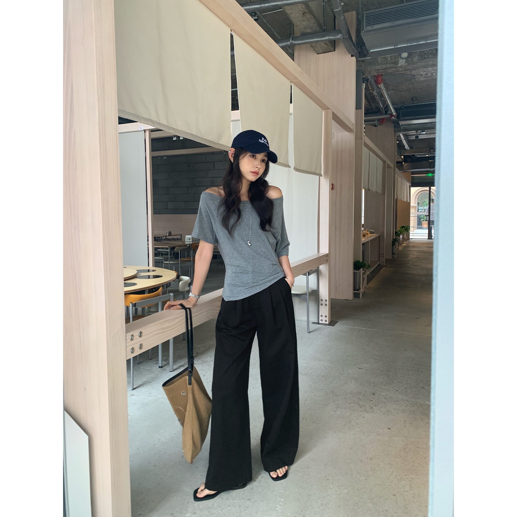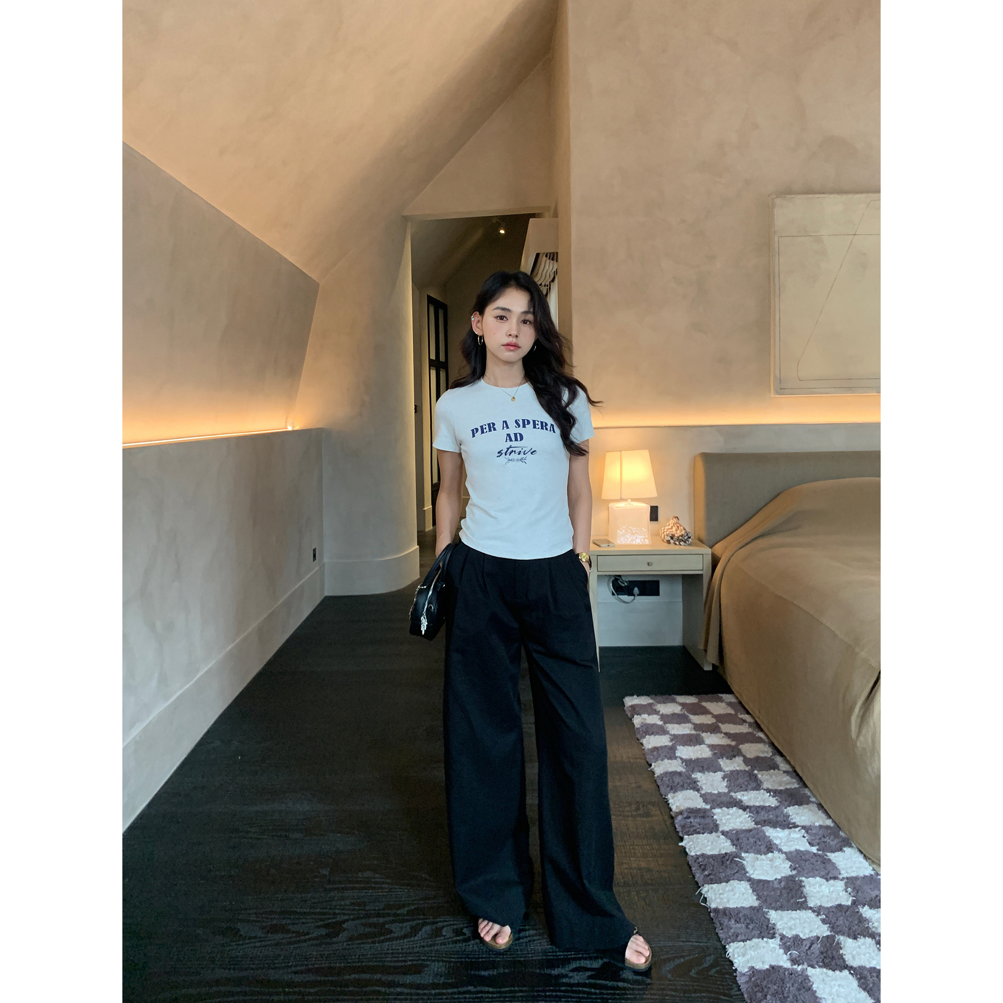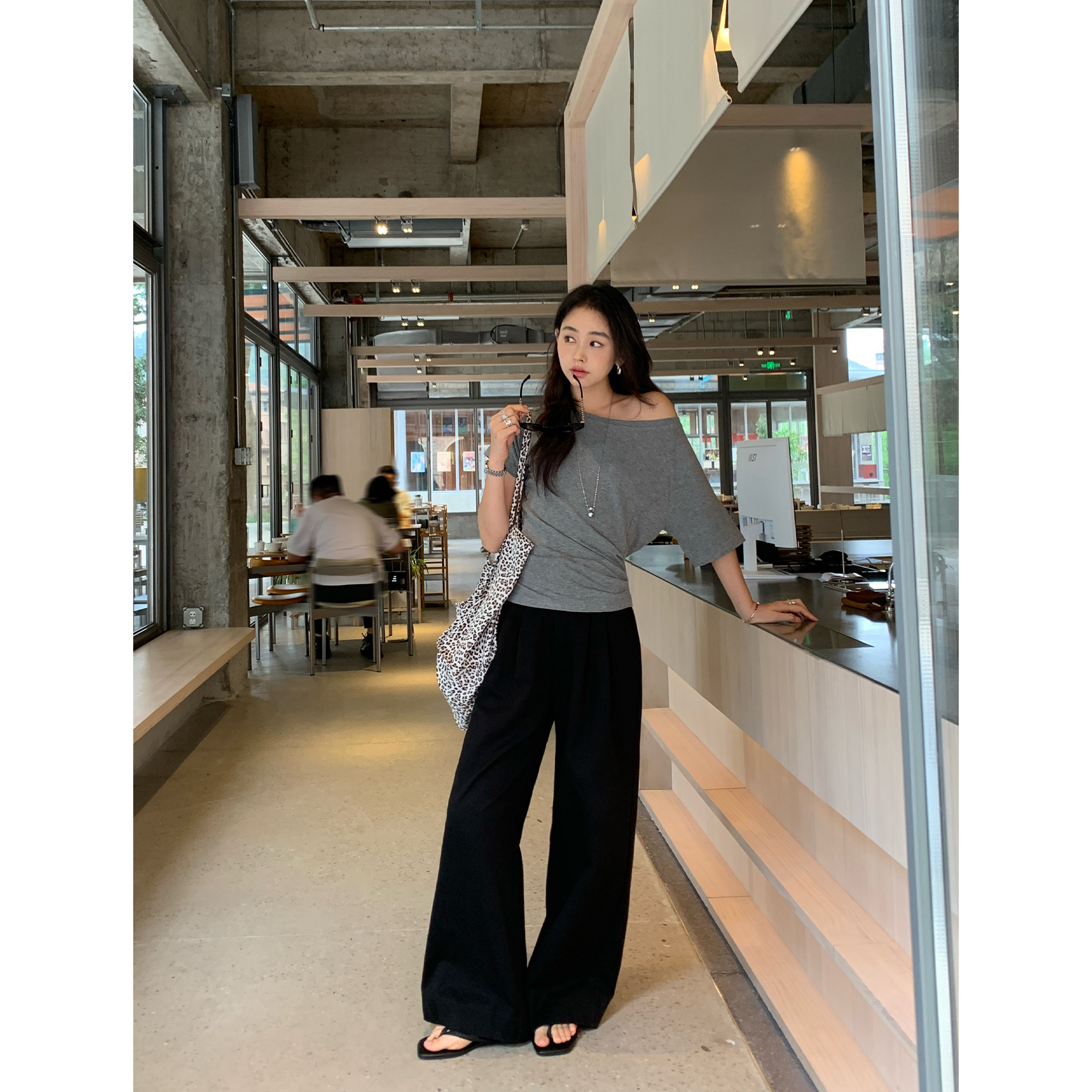 型 报恩裤 松弛感黑色阔腿休闲裤 直筒西装 pusumede 长裤 现货7折