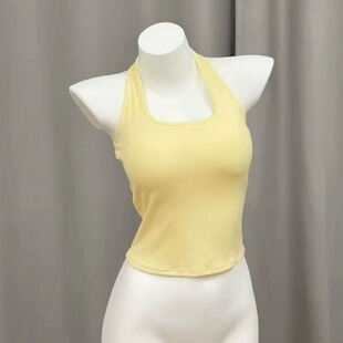 挂脖吊带背心上衣带胸垫少女夏季 多巴胺内搭显瘦蓝色粉色白色黑色