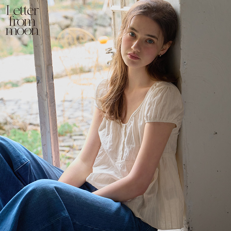 哈妮克孜同款 2025夏新款 Letter moon甜美蕾丝衬衫 上衣女 from