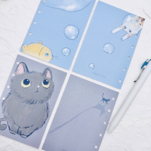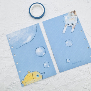 A7分隔页 我们 原创双面手帐闪砂绘本 手绘彩色 世界 猫咪
