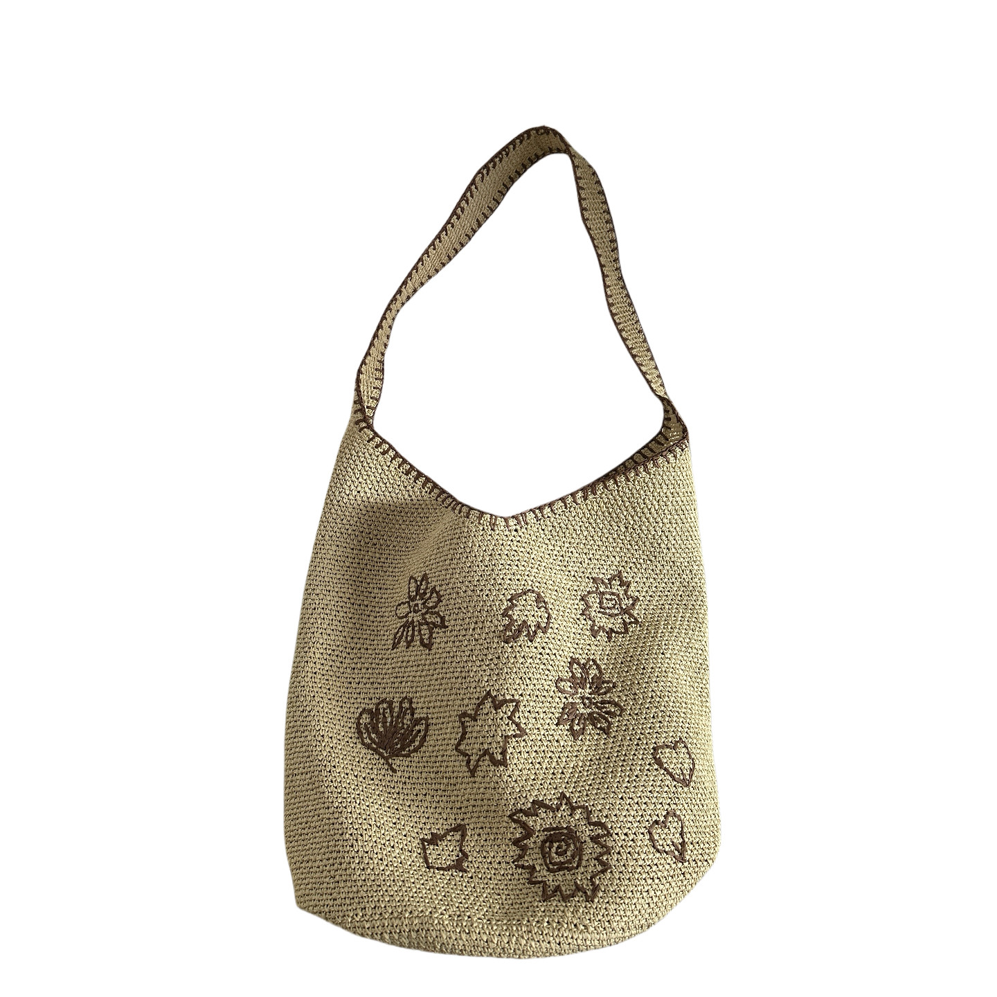 手工童趣撞色草编包编织包夏季 沙滩包女士度假包黑色米色设计师款