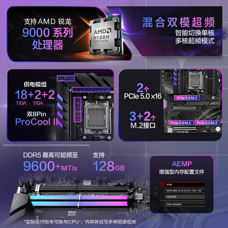 9900x3d板u搭华硕X870吹雪重炮手主板cpu 9800x3d amd 9950x3d