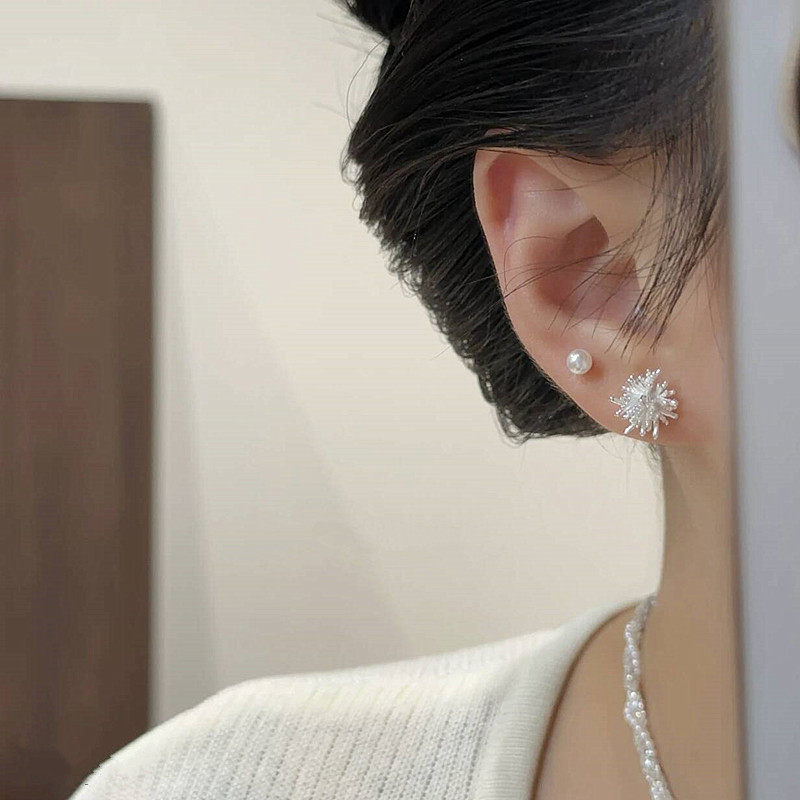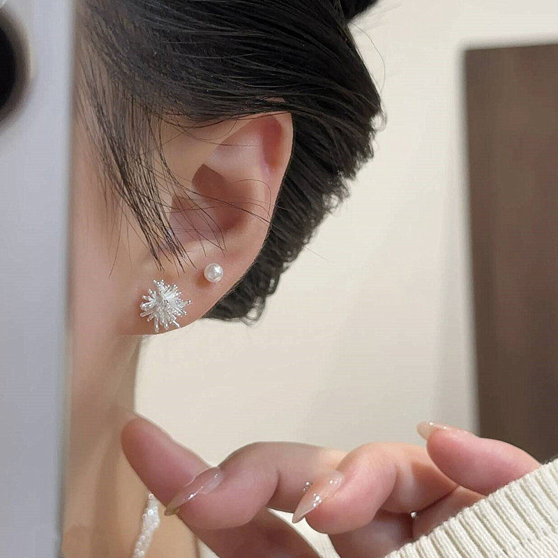 999纯银雪花耳钉女养耳洞睡觉免摘防掉耳环2025新款 秋冬耳饰 爆款